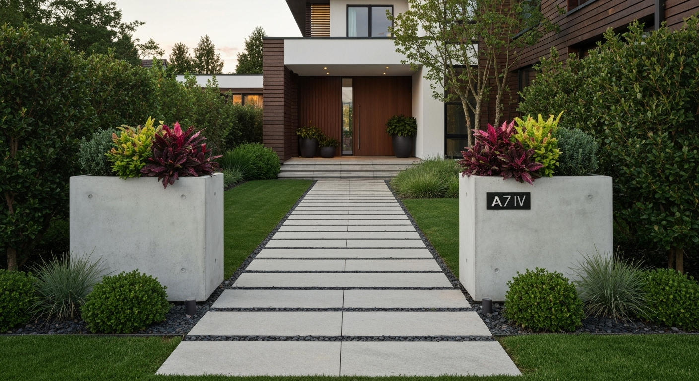 Elegancka prostota donic betonowych jako klucz do nowoczesnego wejścia do ogrodu